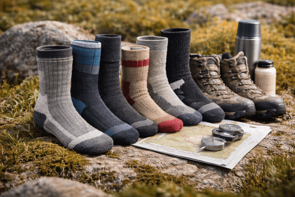 Vaellussukat vertailussa: materiaalit, paksuus, istuvuus ja hiertymien ehkäisy.