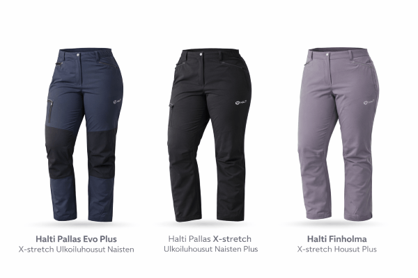 Halti Pallas X-stretch Ulkoiluhousut Naisten PlusX-stretch, hengittävät ja joustavat, plus- mitoitus, useita värivaihtoehtojaMonikäyttöinen ulkoiluHalti