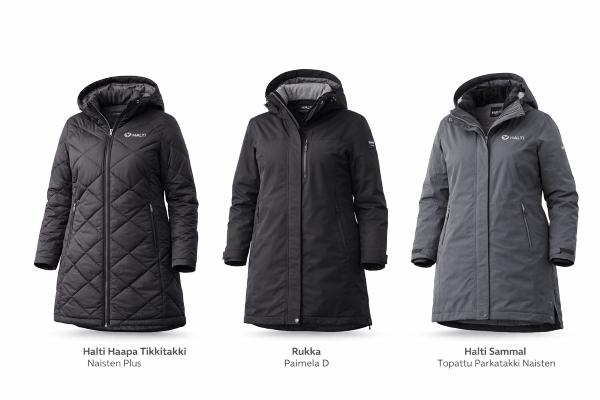 Jos taas ostat tiettyyn tarpeeseen, valinta kannattaa tehdä sään ja käyttötavan mukaan. Sateeseen vahvoja vaihtoehtoja ovat The North Face Women’s Quest Plus Jacket ja Halti Forter DX Kuorihousut Naisten Plus. Viileämpään välikausikäyttöön Halti Sammal Topattu Parkatakki Naisten Plus on yksi oppaan kiinnostavimmista vaihtoehdoista.